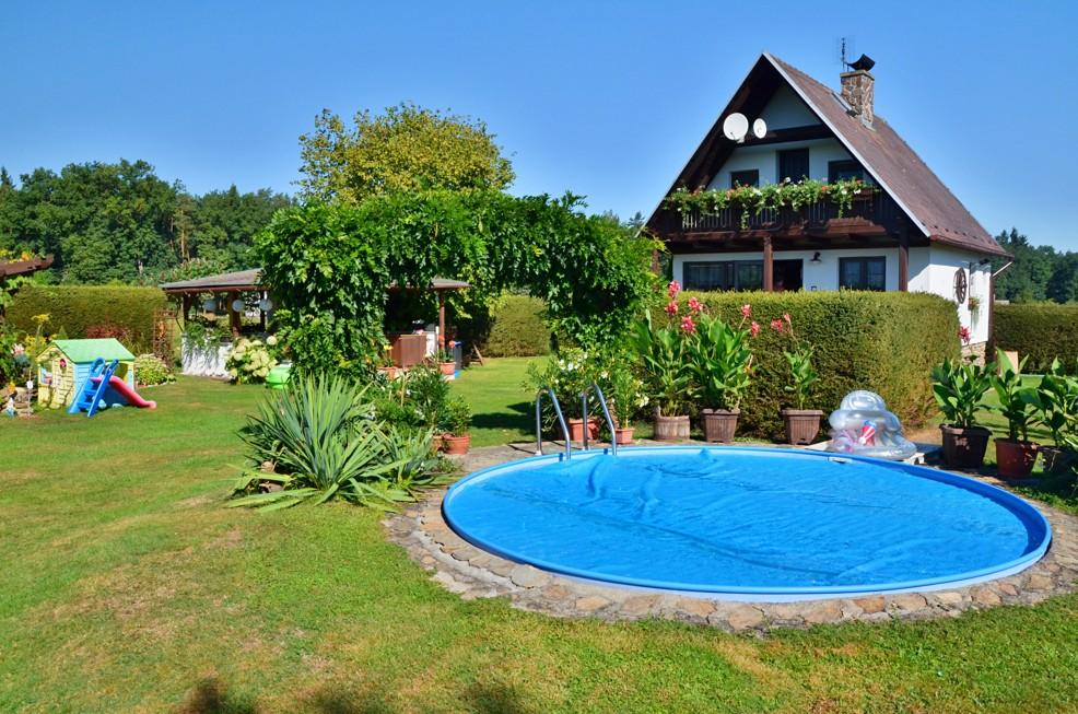 bazén venkovní (4,5 m2 x 1,20 m hl. , s filtrací), lednička 1,