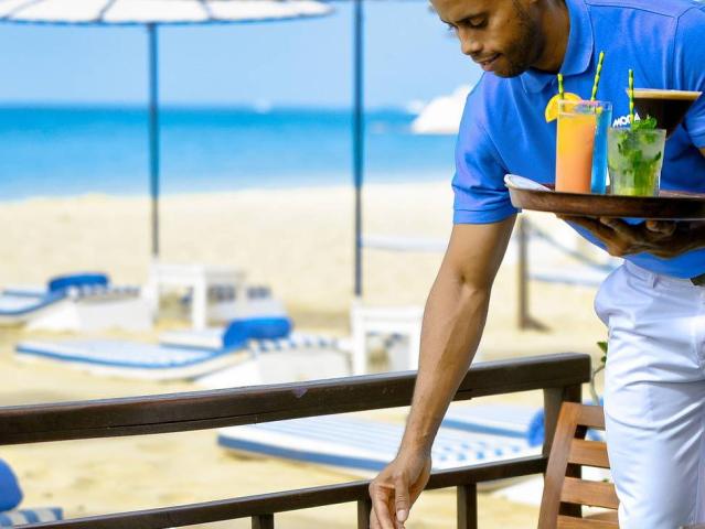 Recepce s lobby, restaurace Les Palmiers (místní a mezinárodní kuchyně, rest. se specializuje na grilovaná jídla) bar u bazénu otevřený od 9.30 do 18.00, bar Tortue otevřený od 18.00 do 24.00, rozsáhlý komplex 3 bazénů v exotické zahradě, sluneční terasy s lehátky a slunečníky. K dispozici jsou tenisové kurty (za poplatek) a fitness centrum. |