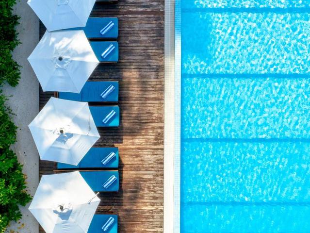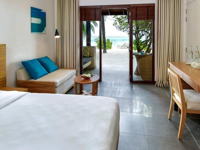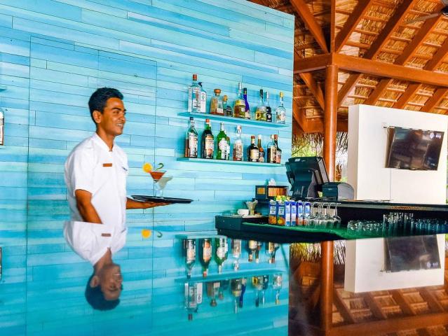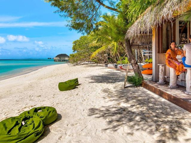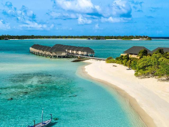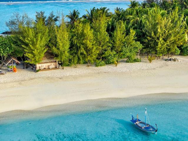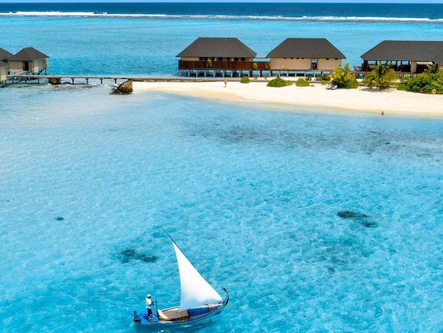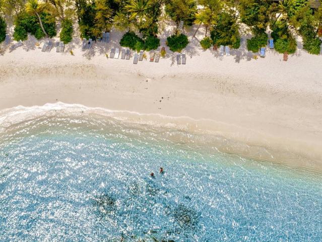 Hotel se nachází na ostrově obklopeném bílými plážemi a
