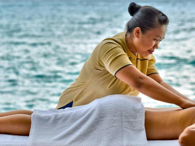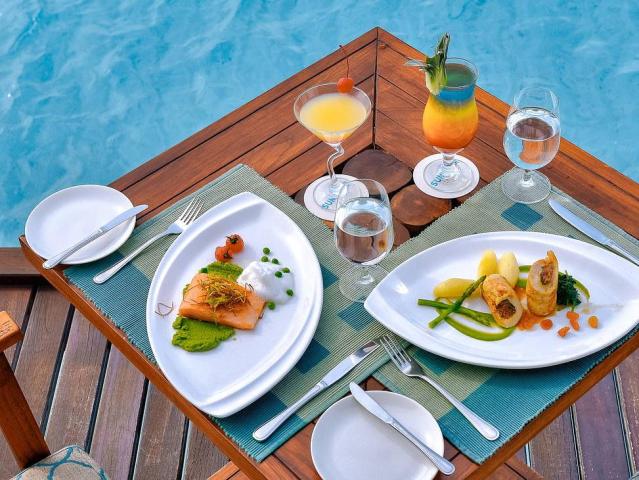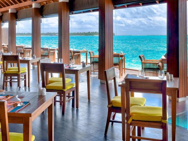 oceánu (pro pokoje: premium beach a vily na vodě), restaurace a'la